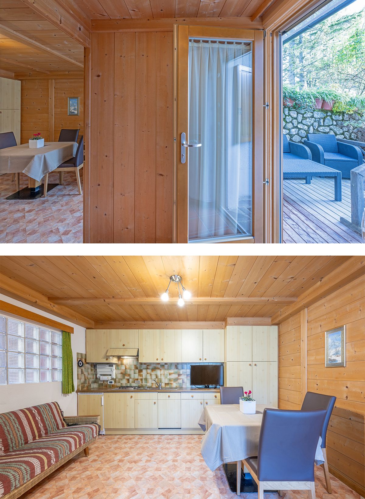 Il nostro bilocale è situato al piano terra, lato est e con vista giardino.